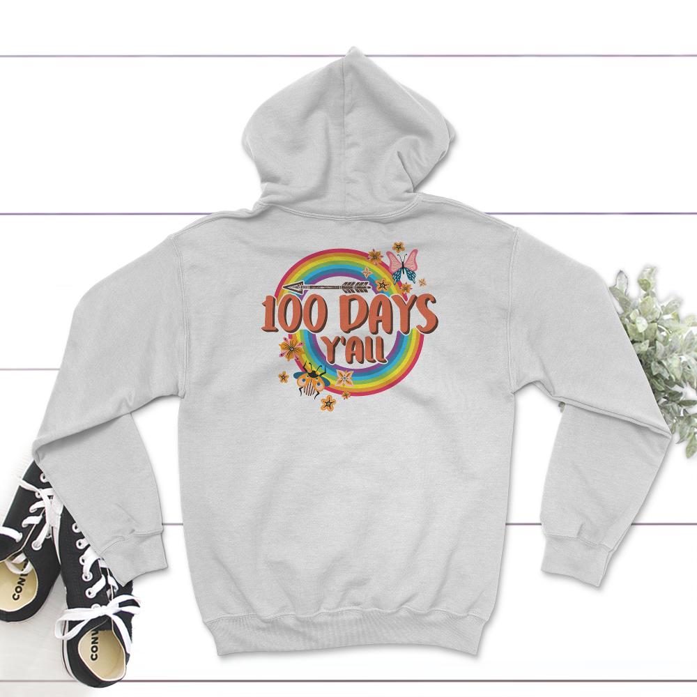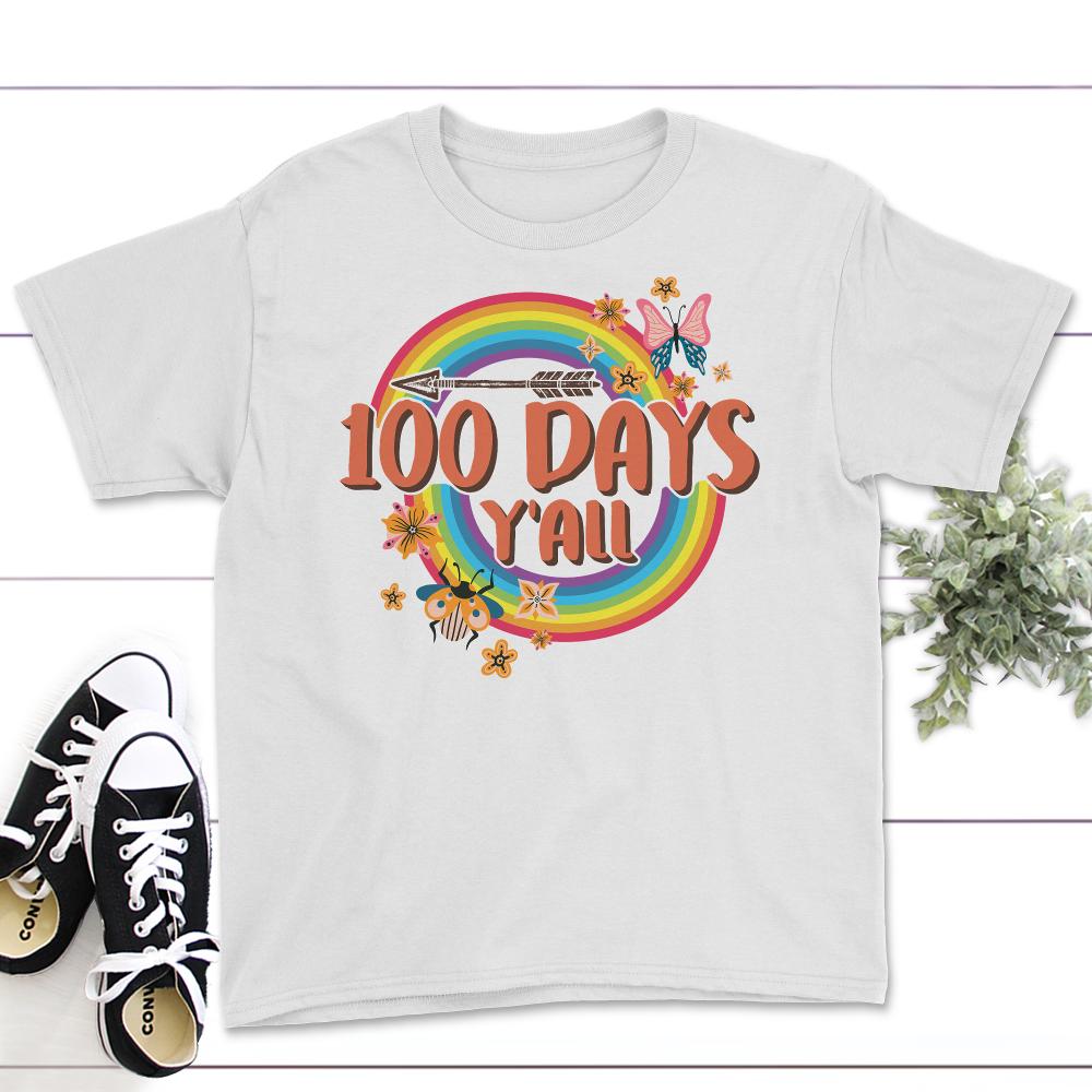 100 Days Y'All, Funny 100 Days Arrow Tee, Teacher Or Student 100 Days Of School Gift, Cool 100 Days Rainbow Butterfly T-Shirt