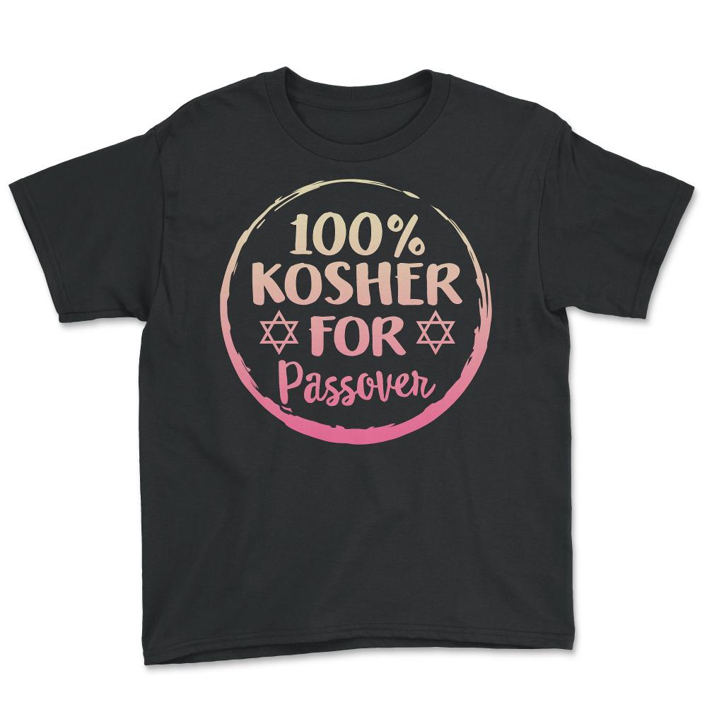 100% Kosher For Passover Shirt, Jewish Holiday Funny Seder Gift, Jews - Youth Tee - Black