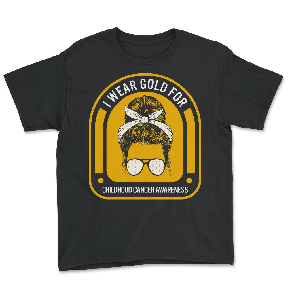 Childhood Cancer Awareness Shirt, I Wear Gold Messy Bun Ribbon Tee, Pediatric Strong Cancer Survivor Warrior Support Kids T-Shirt