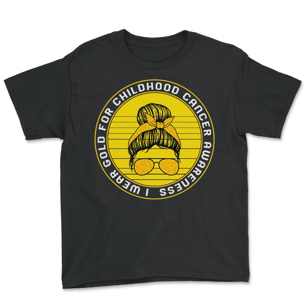 Childhood Cancer Awareness Shirt, I Wear Gold Messy Bun Ribbon Tee, Pediatric Strong Cancer Survivor Warrior Support Kids T-Shirt