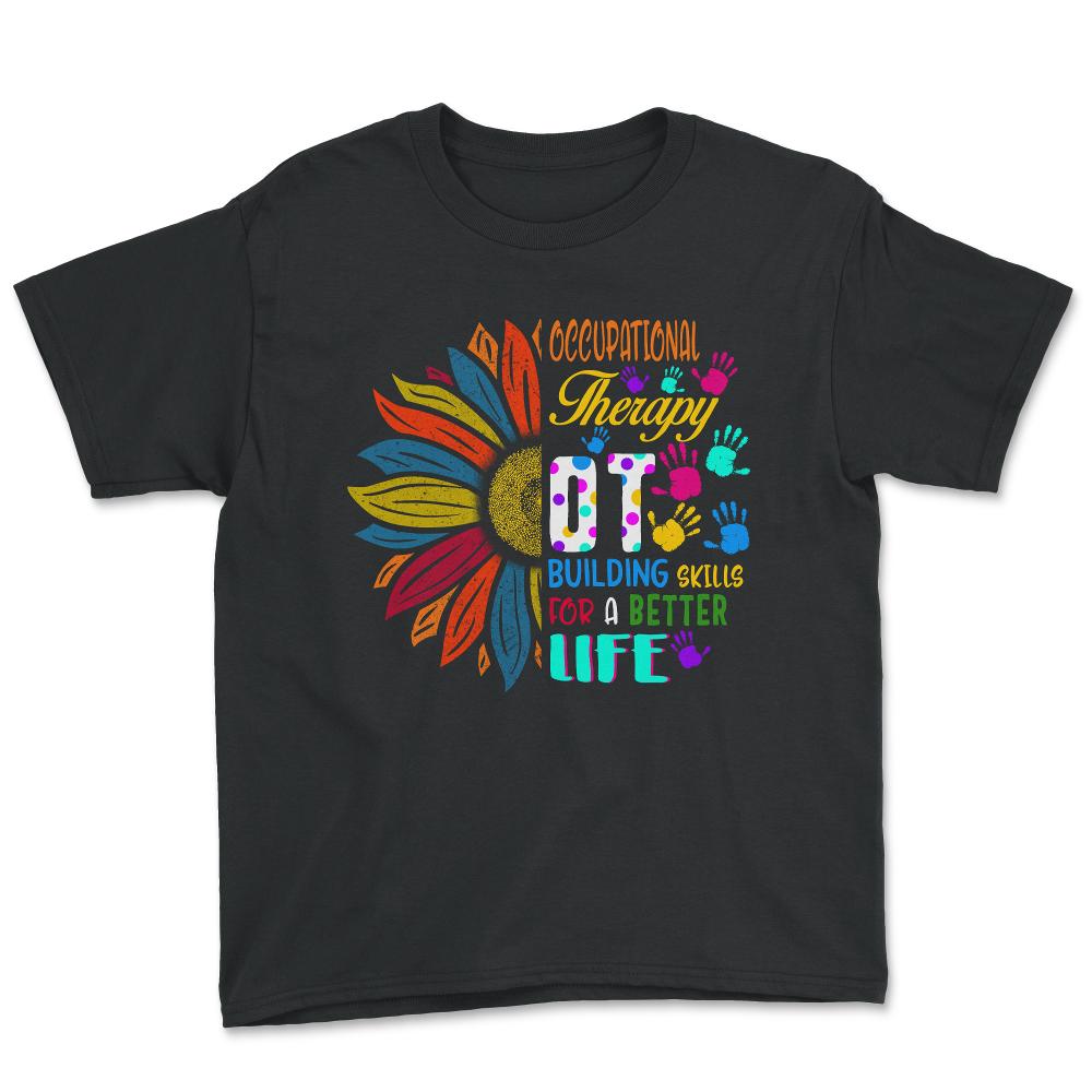 Occupational Therapy Shirt, Building Skills For Better Life, Occupational Therapist OT Gift Counselor Hands Sunflower T-Shirt